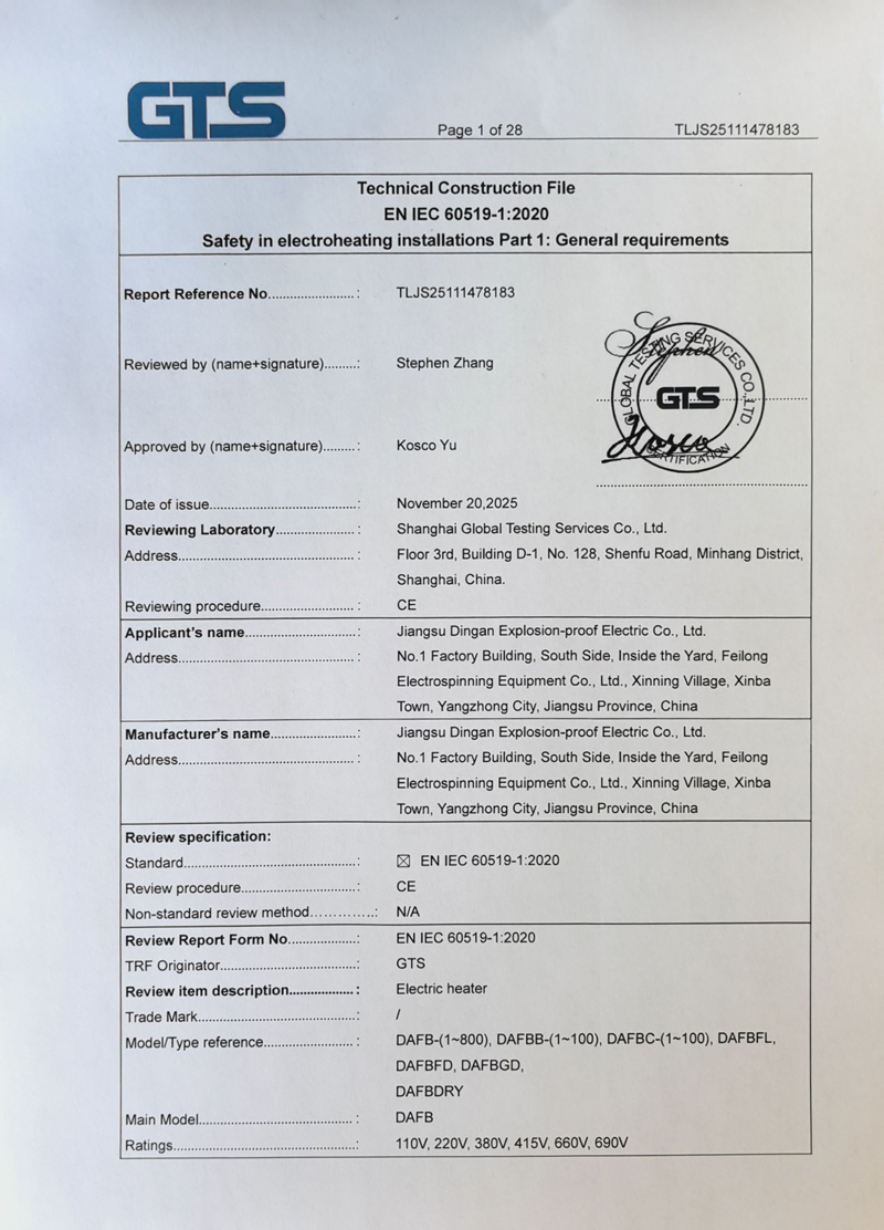 江蘇鼎安防爆電氣有限公司是一家生產(chǎn)和銷售高品質(zhì)電加熱設(shè)備的民營企業(yè)。擁有成套完善的生產(chǎn)設(shè)備和一支技術(shù)力量雄厚的研發(fā)及生產(chǎn)隊伍。主要生產(chǎn)環(huán)保節(jié)能的PTC電加熱器、防爆導(dǎo)熱油爐電加熱器、防爆管道加熱器、防爆風道加熱器、單頭加熱管、雙頭加熱管、翅片加熱管、防爆法蘭加熱管等。并為國內(nèi)多家大型科研機構(gòu)及出口企業(yè)配套生產(chǎn)各種電加熱設(shè)備。