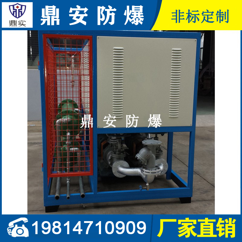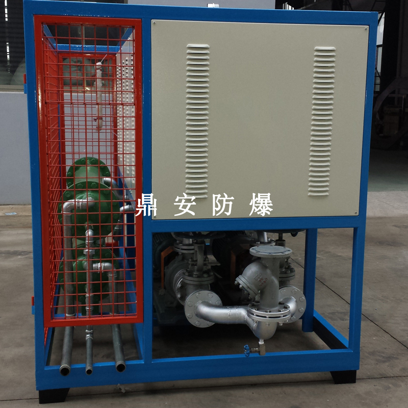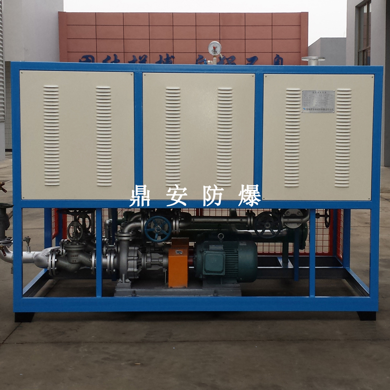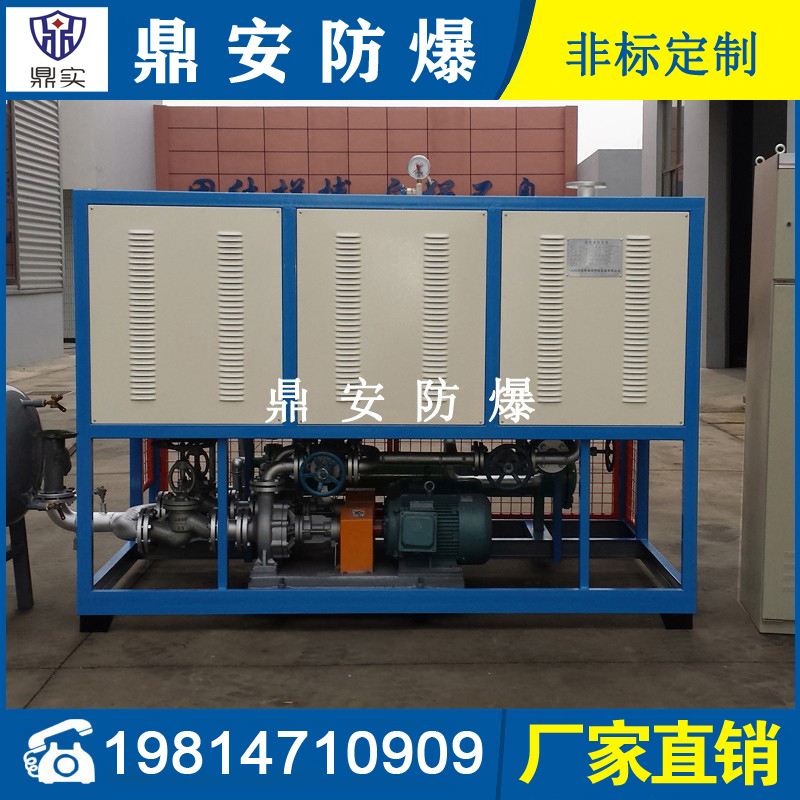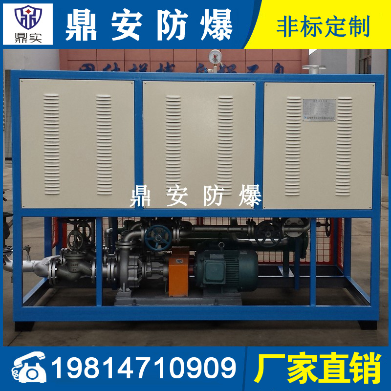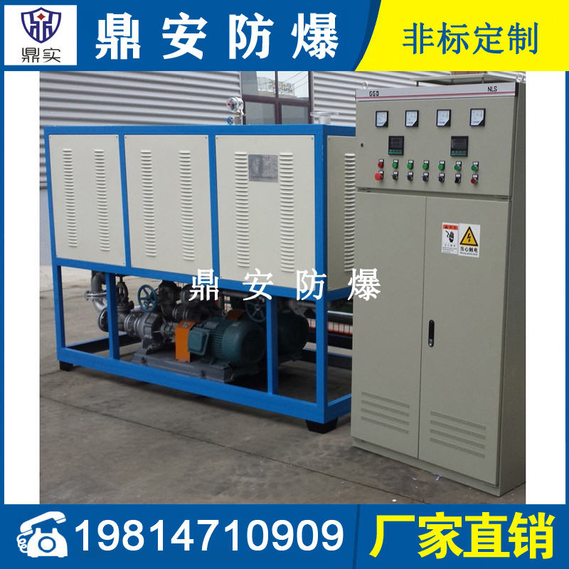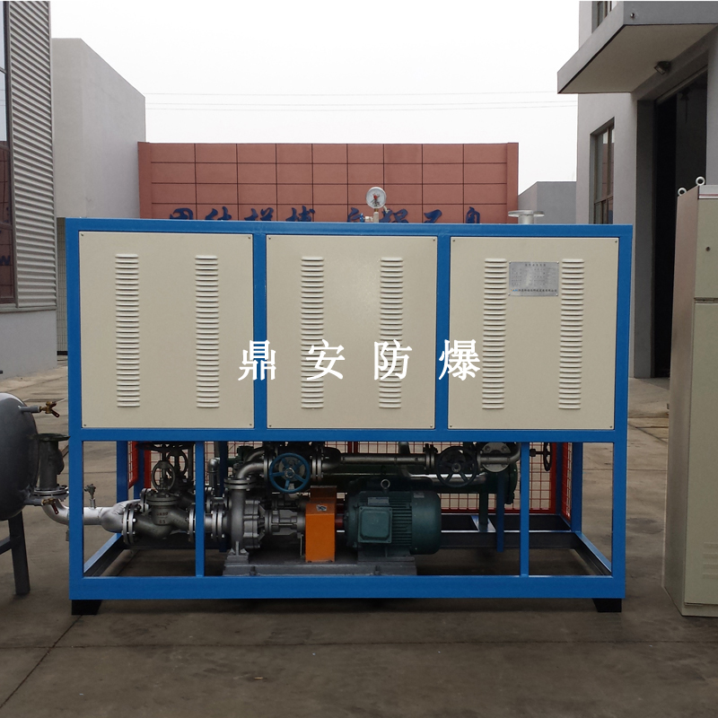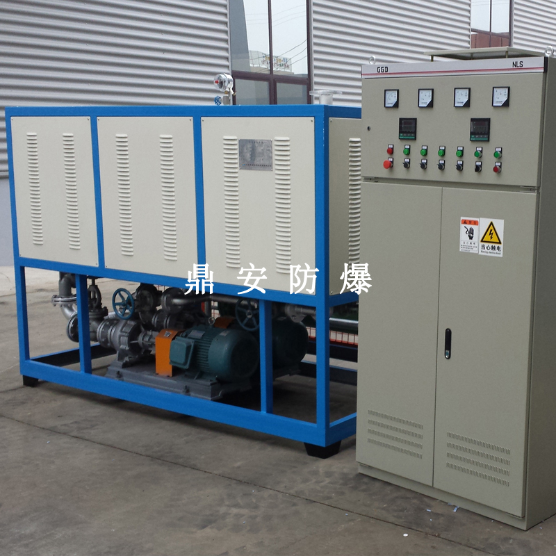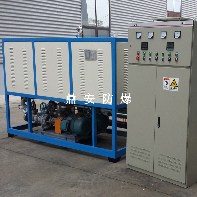 導熱油加熱機組(又稱電加熱導熱油爐)由防爆電加熱器、有機熱載體爐、換熱器(可配置)、控制柜,熱油泵、膨脹槽等組成一個整體的系統(tǒng),用戶只需要接入電源、介質(zhì)的進出口管道法蘭及一些電氣接口即可使用。具有完備的運行控制和安全監(jiān)測裝置,能實行自動化控制。能在較低的運行壓力下獲得較高的工作溫度。